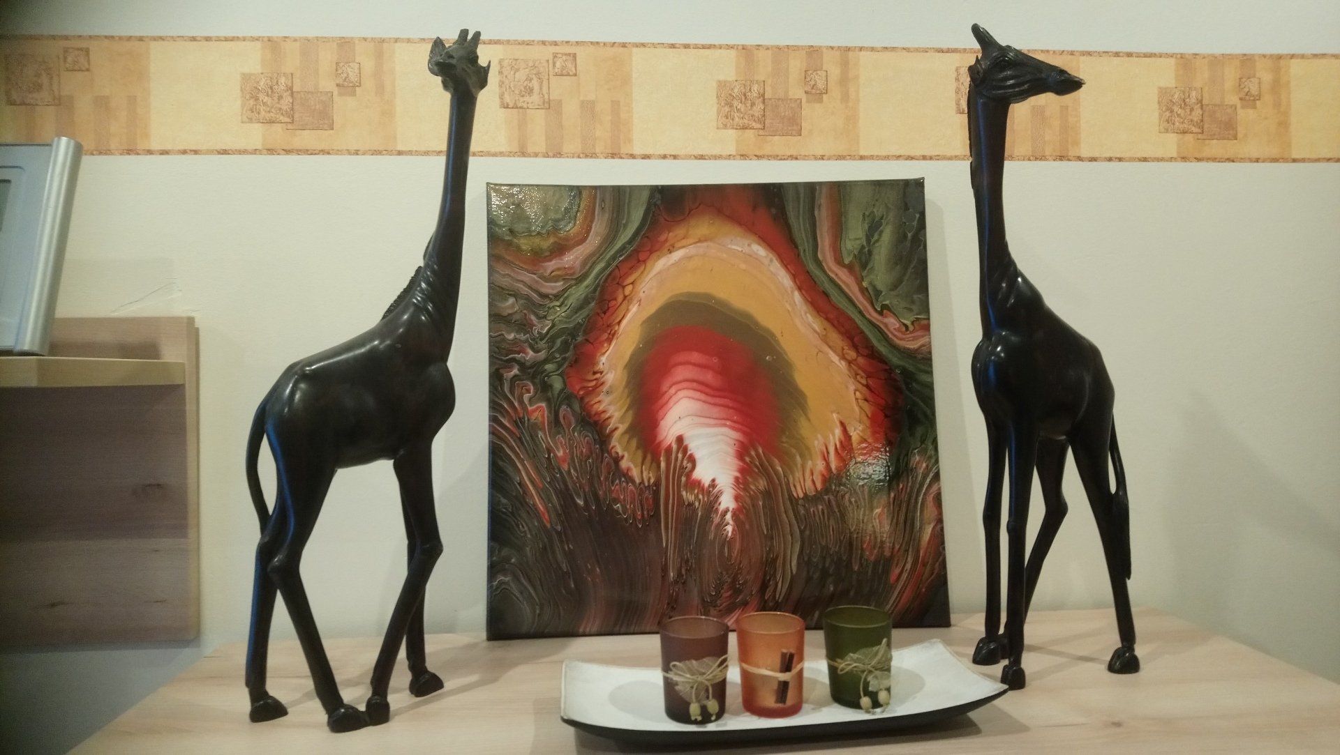 jeweils 40x40cm, Flip Cup Technik, lackiert